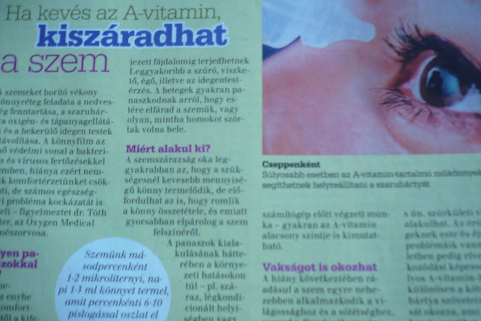 A szemeket borító vékony könnyréteg feladata a nedvesség fenntartása,a szaruhártya oxigén-és tápanyagellátása és a bekerülő idegen testek eltávolítása.A könnyfilm az első védelmi vonal a bakteriális és vírusos fertőzésekkel szemben,hiánya ezért nemcsak komfortérzetünket csökkenti,de számos egészségügyi probléma kockázatát is növeli-figyelmeztet Dr.Tóth Eszter,az Oxygen Medical szemészorvosa.
