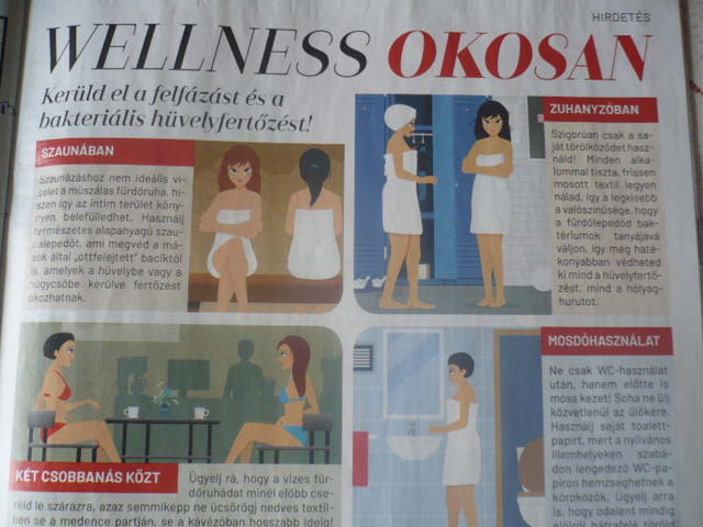 Szaunázáshoz nem ideális viselet a műszálas fürdőruha,hiszen így az intim terület könnyen belefülledhet.Használj természetes alapanyagú szaunalepedőt,ami megvéd a mások által ,,ottfelejtett" bacictól is,amelyek a hüvelybe vagy a húgycsőbe kerülve fertőzést okozhatnak.